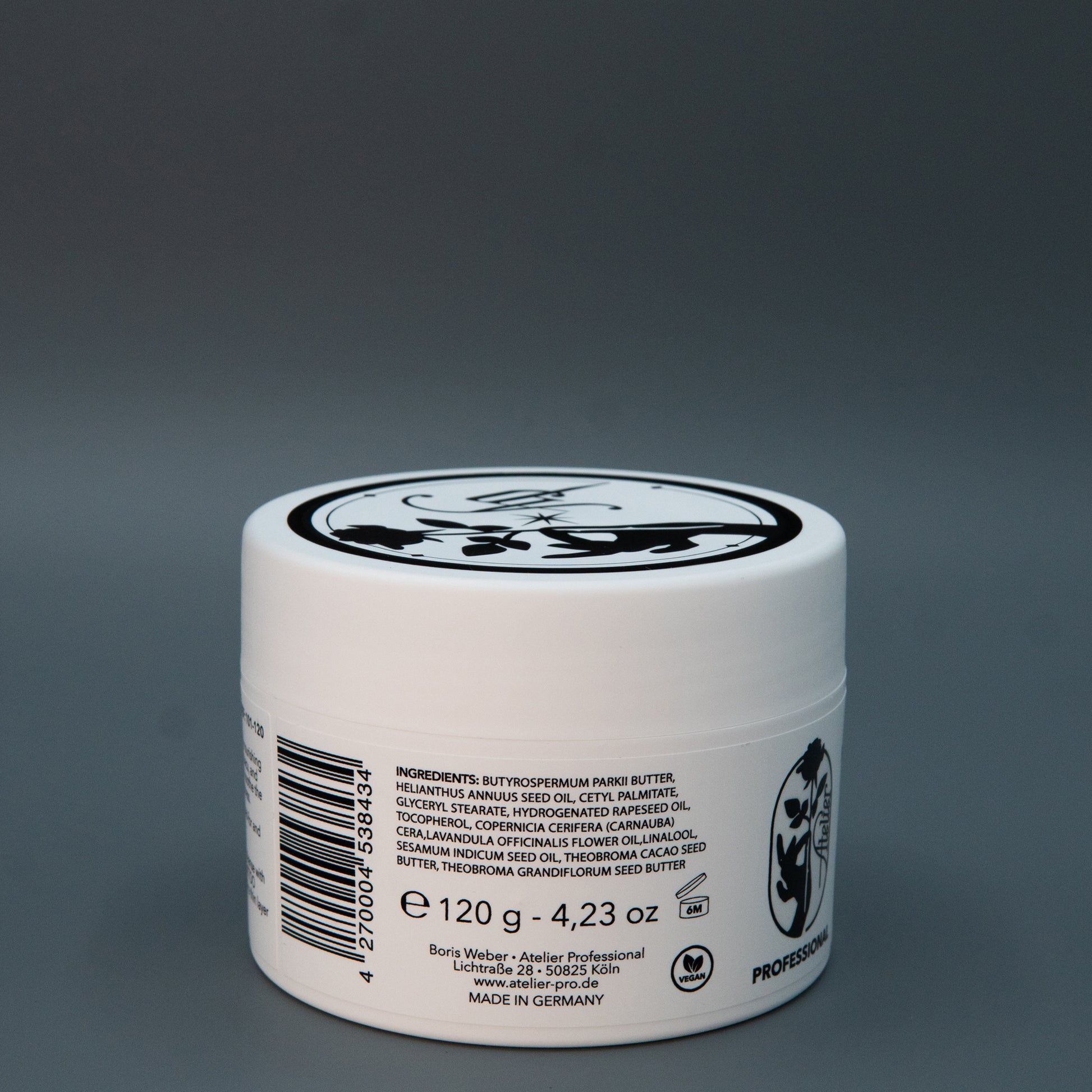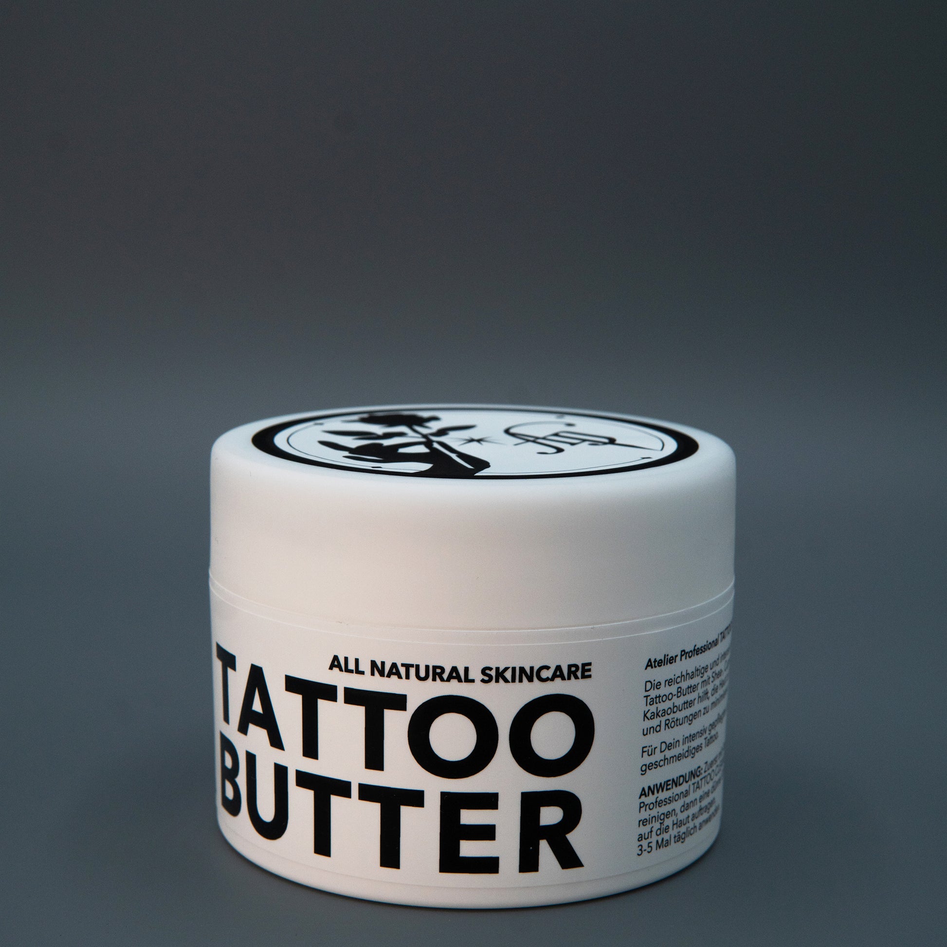 Die reichhaltige Atelier Professional TATTOO BUTTER pflegt tätowierte Haut intensiv und nachhaltig. Natürlich wertvolle Inhaltsstoffe wie Sheabutter, Kokos- und Jojobaöl spenden tiefenwirksame Feuchtigkeit und halten die Haut elastisch weich.Die reichhaltige Cremeformel beruhigt gereizte Hautpartien und schützt das Tattoo vor dem Austrocknen – ideal für die Nachsorge und langfristige Pflege. Trotz intensiver Pflege zieht sie schnell ein und hinterlässt kein klebriges Hautgefühl. Die sanfte Formulierung kommt ohne künstliche Duftstoffe aus und ist extrem hautverträglich. Dermatologisch getestet, 100 % vegan und frei von Parabenen, Mineralölen und künstlichen Konservierungsstoffen bietet diese Butter eine hochwertige Pflege für frisch gestochenen und abgeheilten Tattoos.